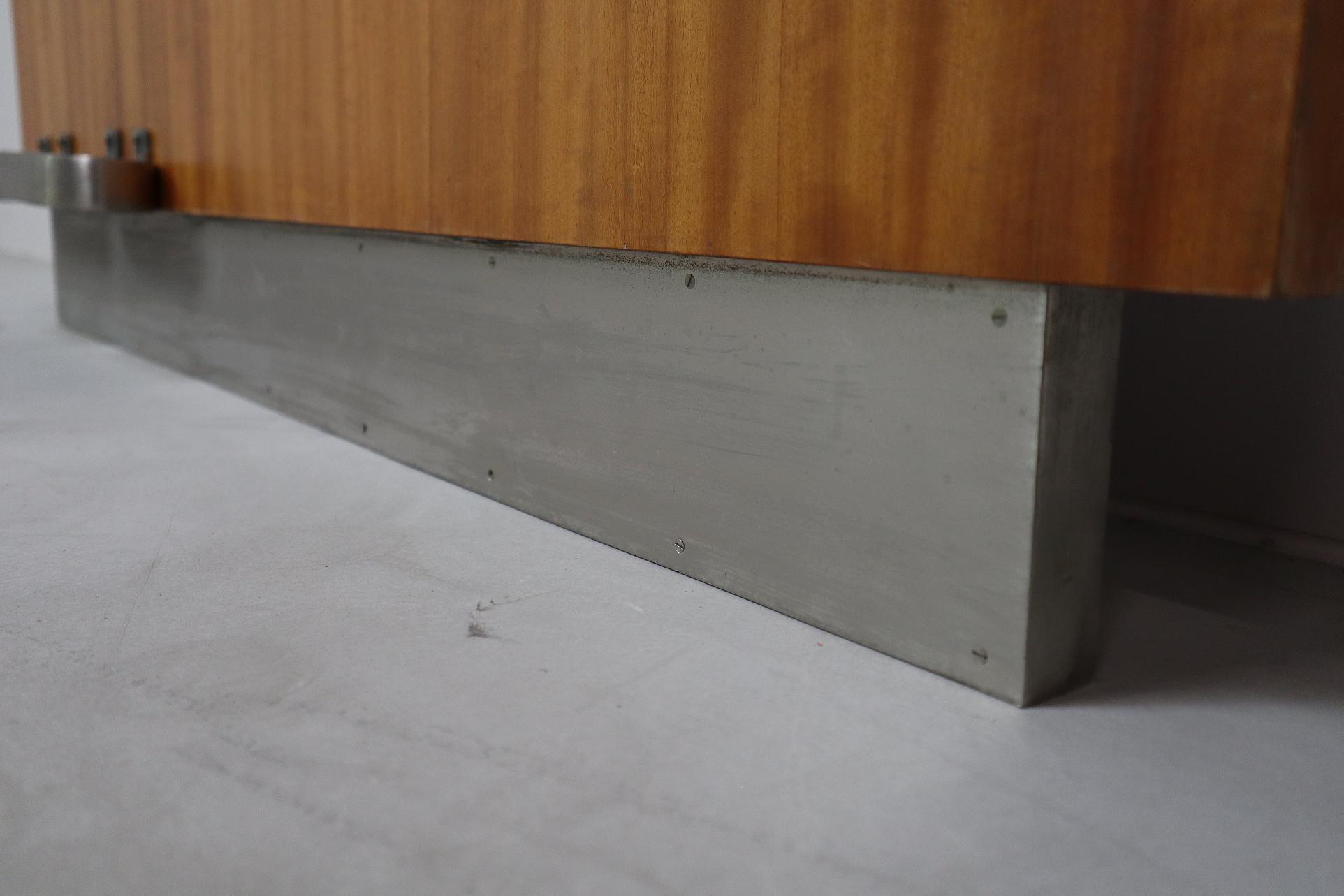 This piece exemplifies post-war European modernist design: functional, architectural, and built with high-quality materials. Its warm Teak grain and rounded metal forms subtly echo late Art Deco and Streamline Moderne influences, while remaining firmly rooted in the clean-lined mid-century aesthetic.