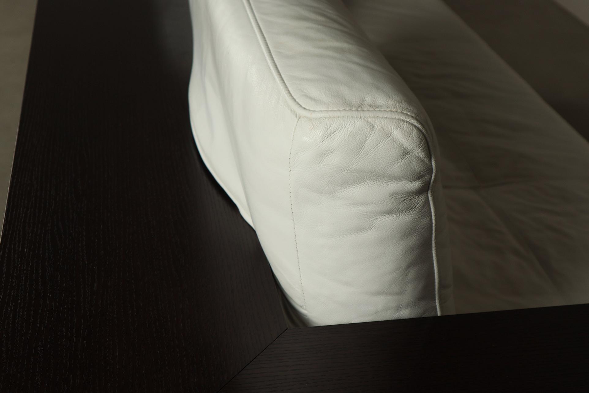 A remarkable feature of the Dono sofa is its sliding seat function: the base can be pulled forward by around 25 cm, transforming the sofa into a generous lounge with deeper seating.
